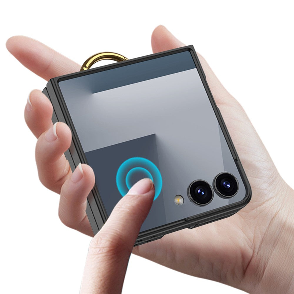 GKK For Samsung Galaxy Z Flip7 5G Case with Ring Kickstand / Card Holder PC Phone Back Cover - Carbon Fiber Texture
