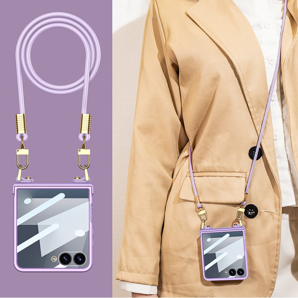 GKK For Samsung Galaxy Z Flip7 5G Case with Shoulder Strap PC Tempered Glass Slim Phone Cover - Black