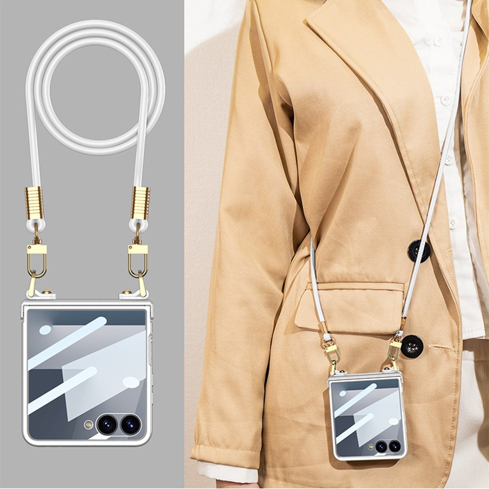 GKK For Samsung Galaxy Z Flip7 5G Case with Shoulder Strap PC Tempered Glass Slim Phone Cover - Purple