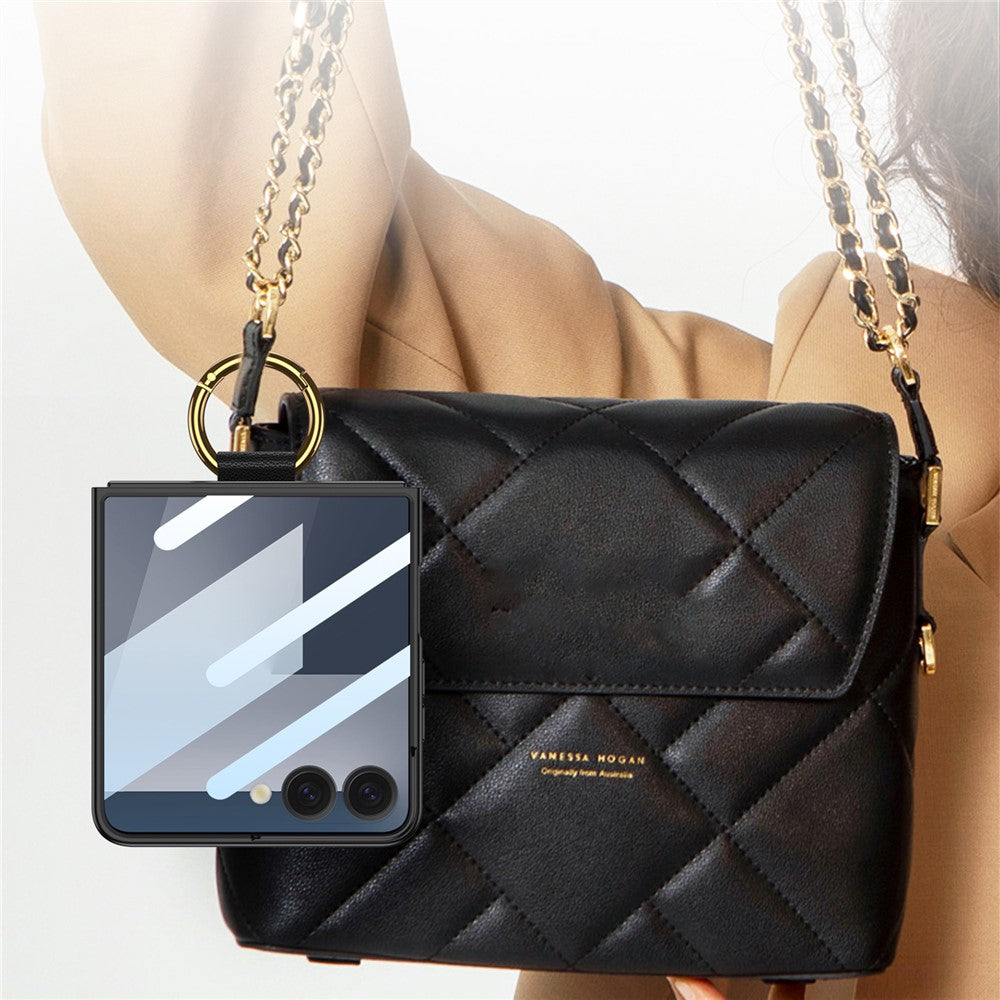 GKK For Samsung Galaxy Z Flip7 5G Magnetic Case PC + Tempered Glass Slim Phone Cover with Kickstand - Black