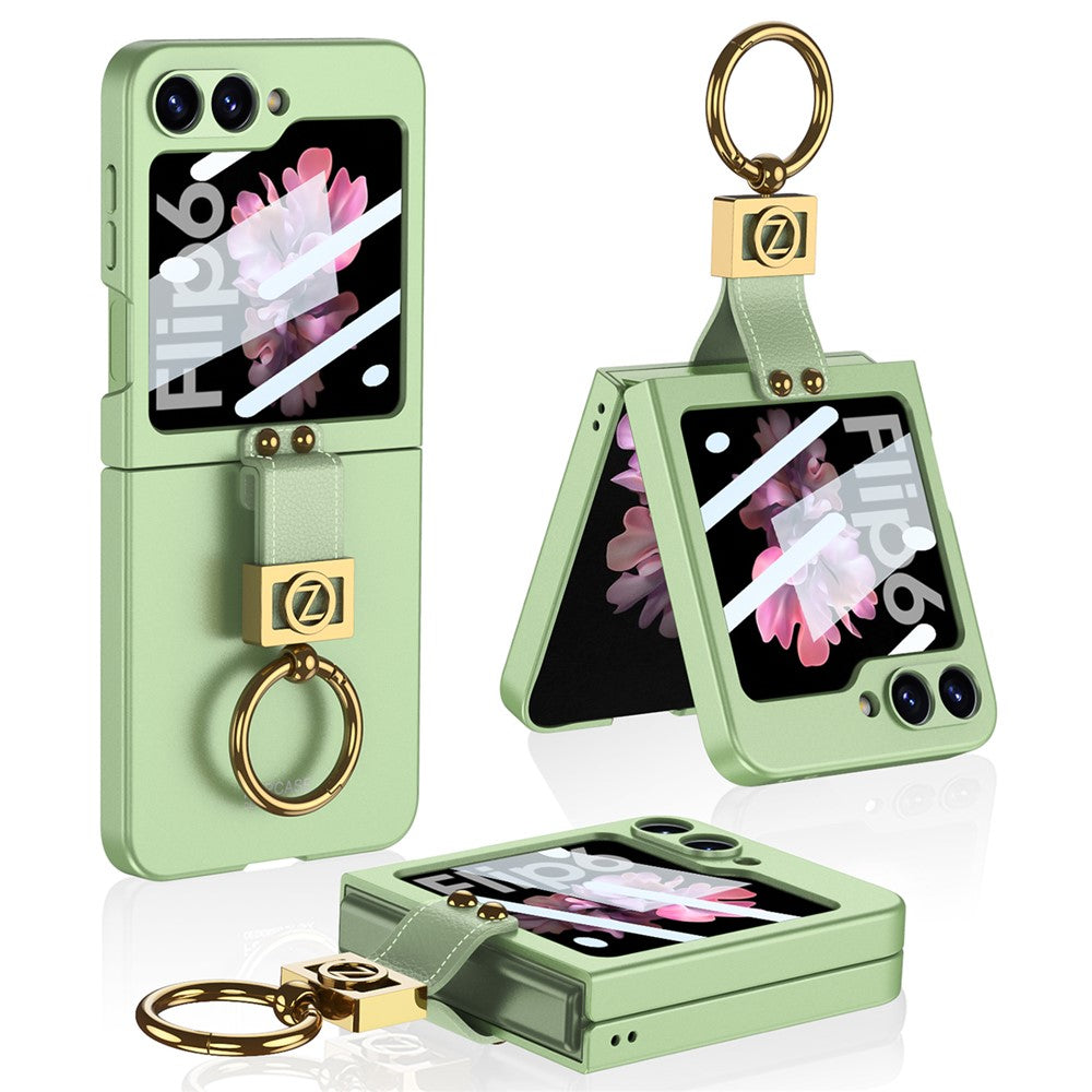 GKK For Samsung Galaxy Z Flip7 FE 5G / Z Flip6 5G PC Phone Case with Ring Holder+Tempered Glass Front Screen Film - Matcha Green
