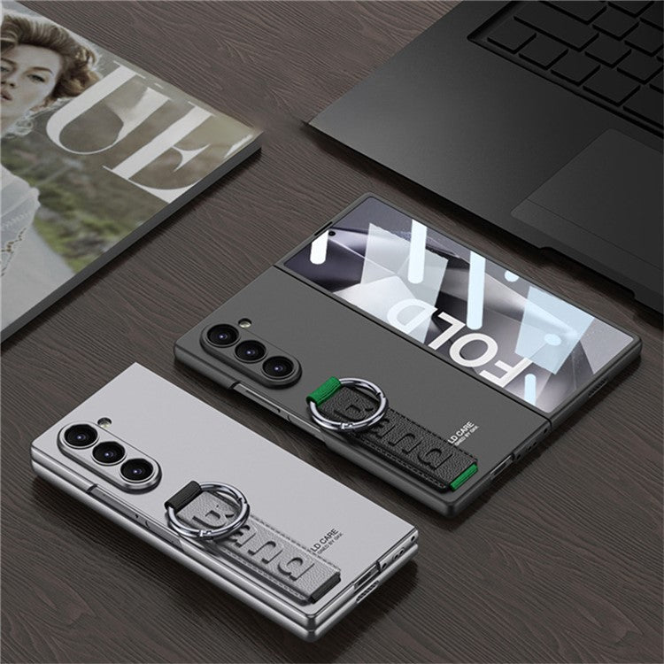 GKK For Samsung Galaxy Z Fold5 5G Case Tempered Glass Screen Film+Hard PC Phone Cover with Ring Holder, Finger Strap - Carbon Fiber Texture