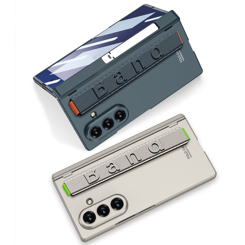 GKK For Samsung Galaxy Z Fold7 5G Case with Kickstand / Finger Strap PC Tempered Glass Phone Cover - Grey