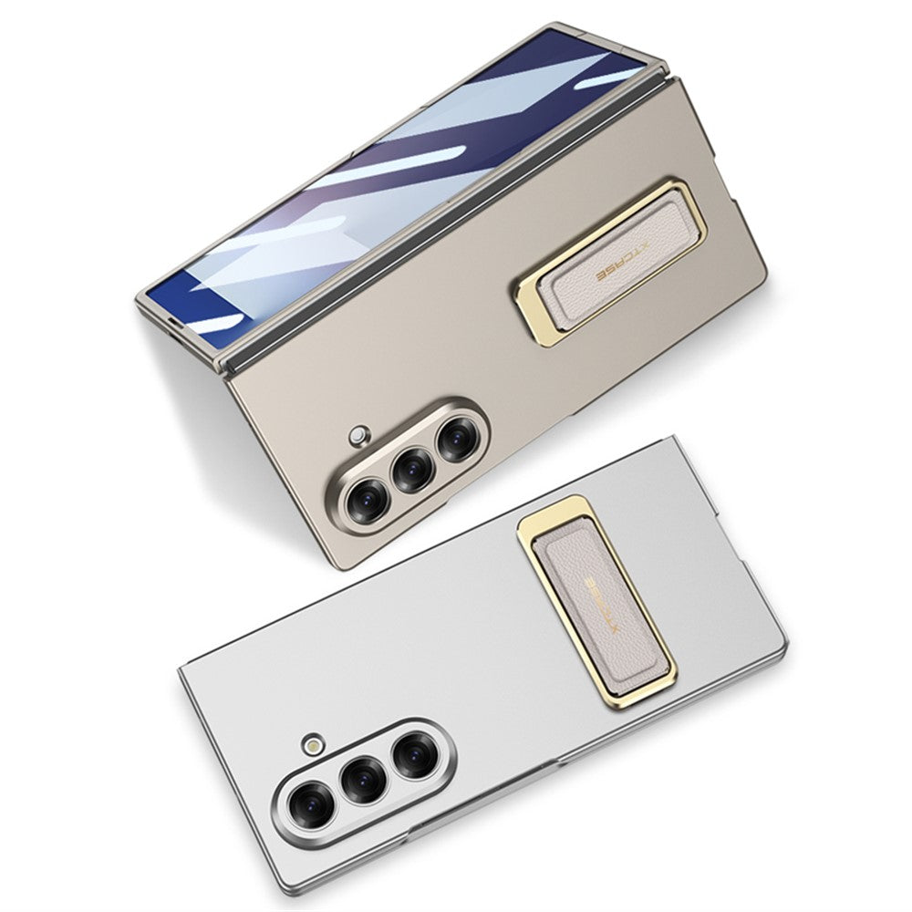 GKK For Samsung Galaxy Z Fold7 5G Case with Kickstand / Magnetic Strap PC Tempered Glass Phone Cover - Silver