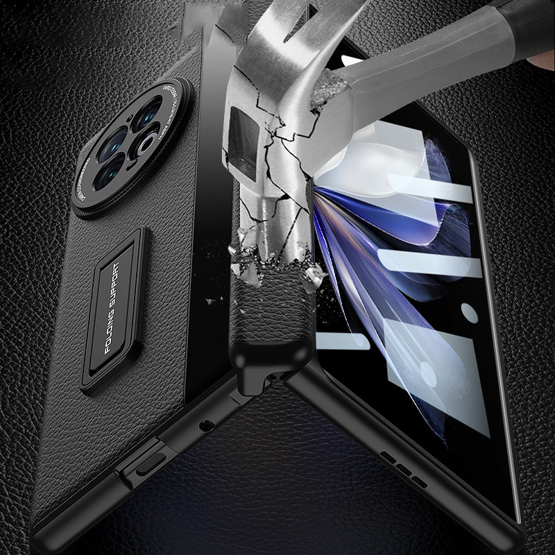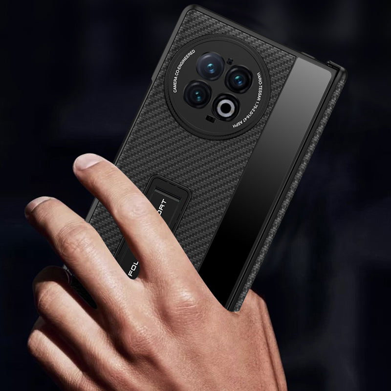 GKK For vivo X Fold2 Kickstand Phone Case PU Leather+PC Magnetic Hinge Protection Cover with Tempered Glass Film - Red / Black