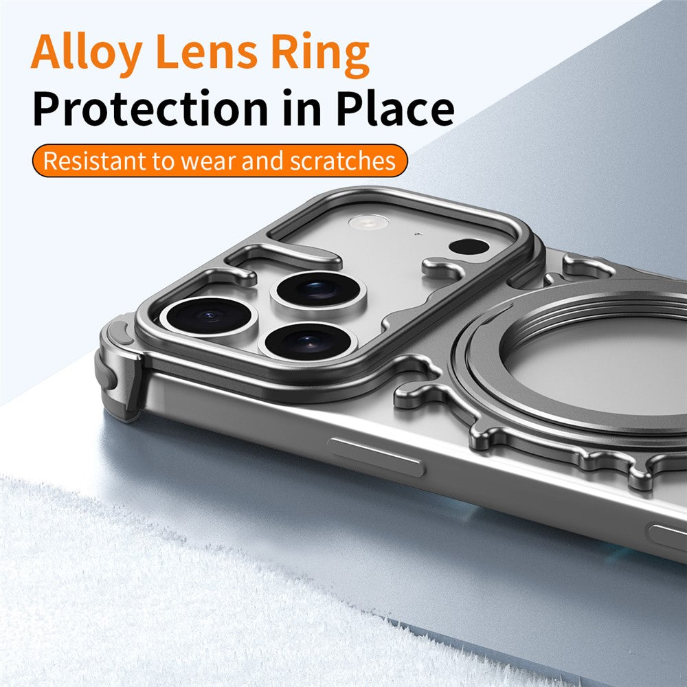 Glacier Series for iPhone 17 Pro Max Bumper Case Rotating Kickstand Metal Phone Cover Compatible with MagSafe - Silver