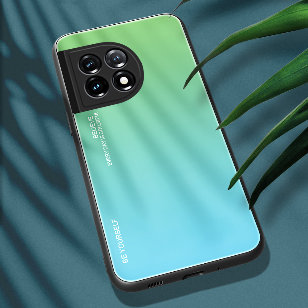 Gradient Color Phone Case for OnePlus 11 5G Tempered Glass PC TPU Anti-Scratch Phone Cover - Cyan / Blue