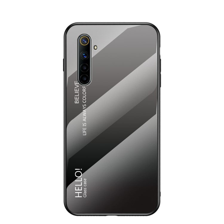 Gradient Color Tempered Glass + PC + TPU Hybrid Case for Realme 6 - Grey / Black