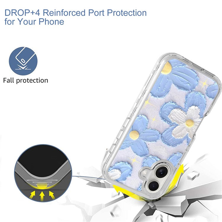 GW02 For iPhone 16 Case IMD Pattern TPU+PC Shockproof Phone Cover - Blue Flower