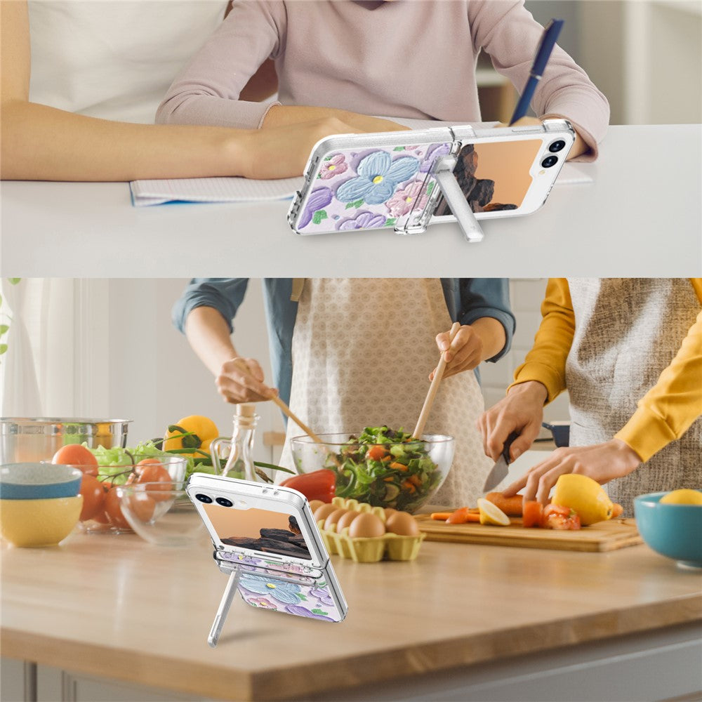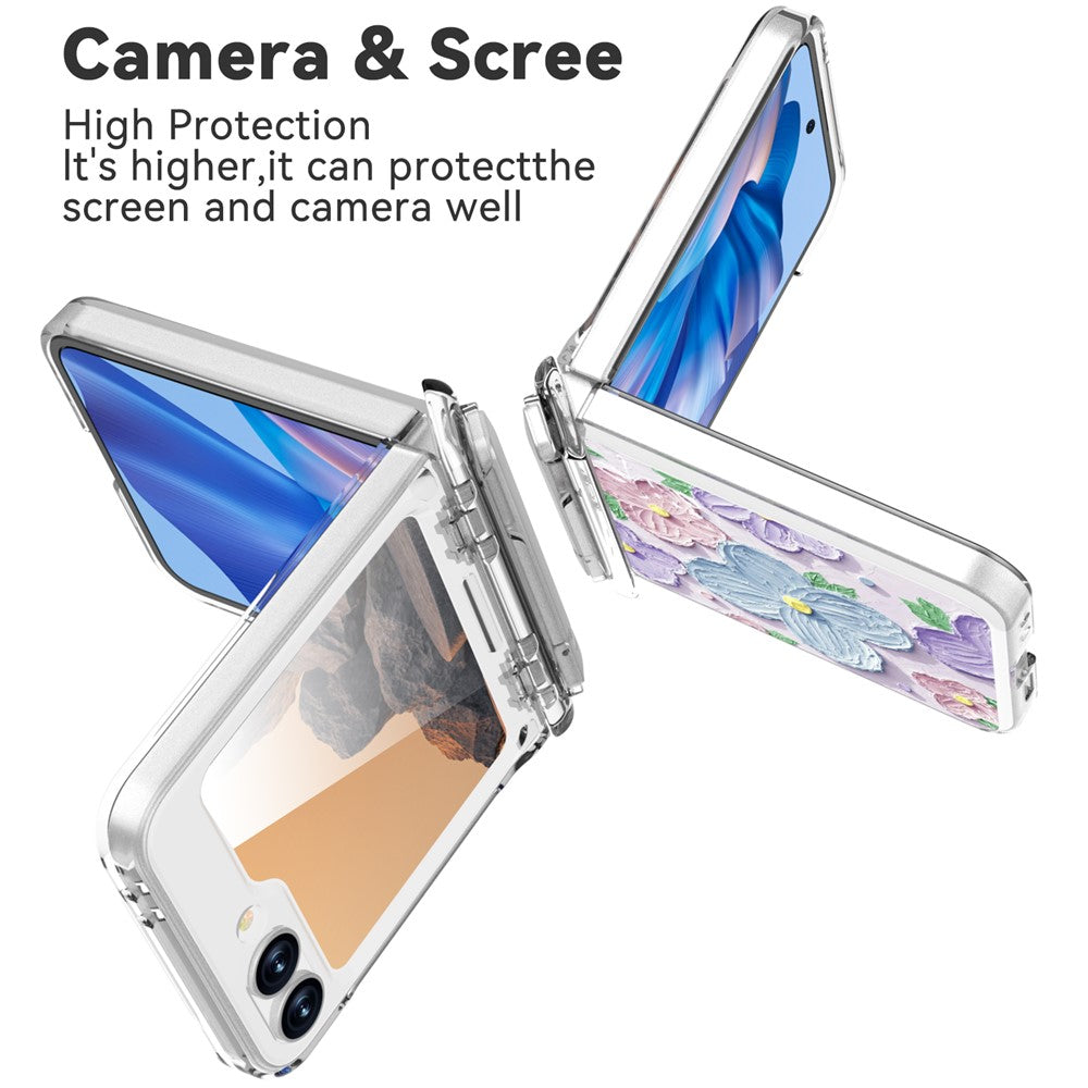 - ?Exquisite Design? The PC folding phone case with a tempered glass front screen protector, offering both aesthetic appeal and robust protection against drops and shocks