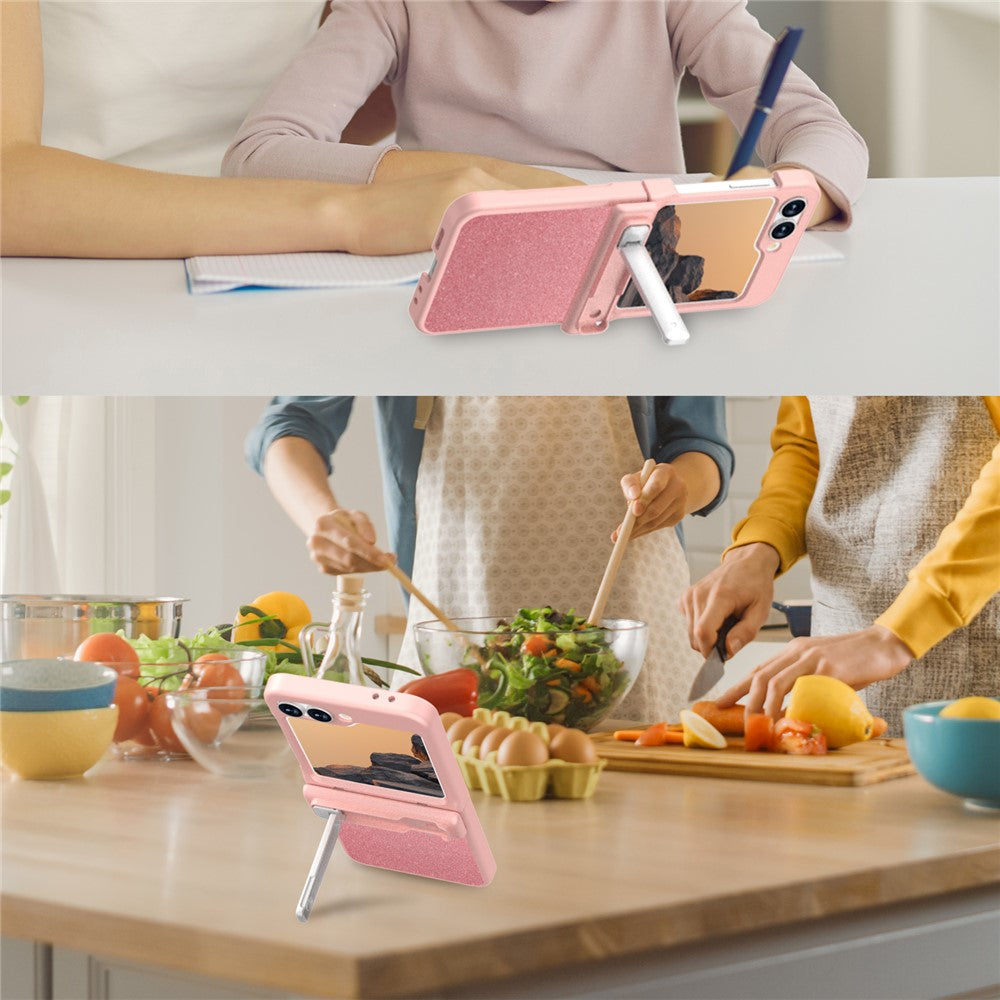GW181 For Samsung Galaxy Z Flip7 FE 5G  /  Flip6 5G Case with Pattern Design Kickstand Hard PC Phone Cover - Rose Gold
