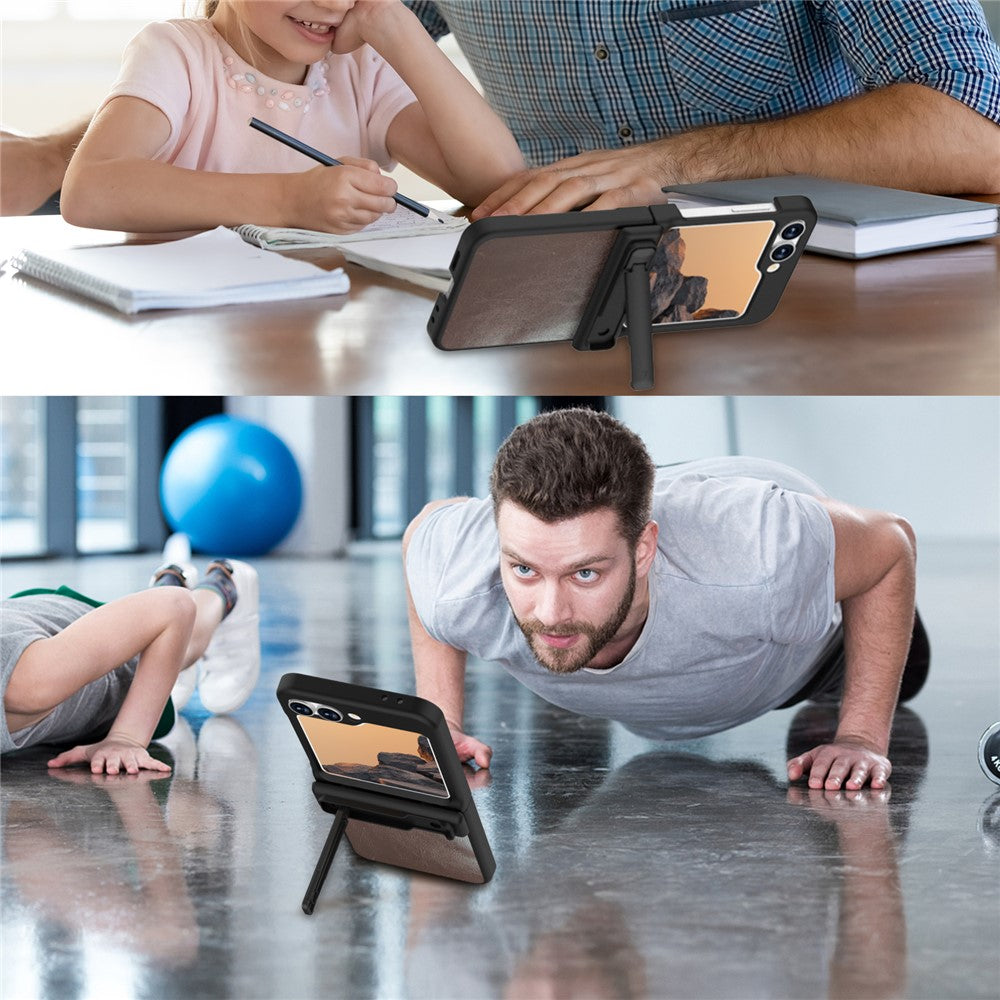 - Durable Material: This folding phone case is crafted from a combination of robust PC+tempered glass upper screen film and Litchi textured PU leather, offering superior drop and shock protection with a sophisticated look