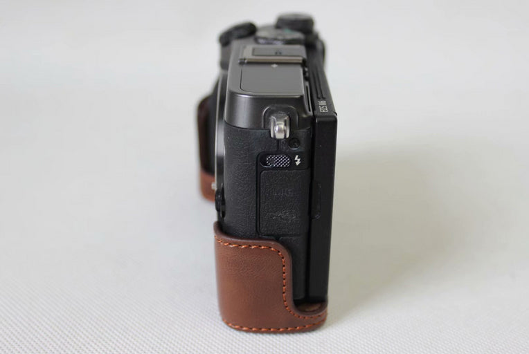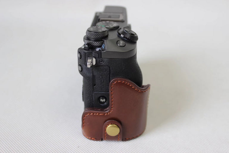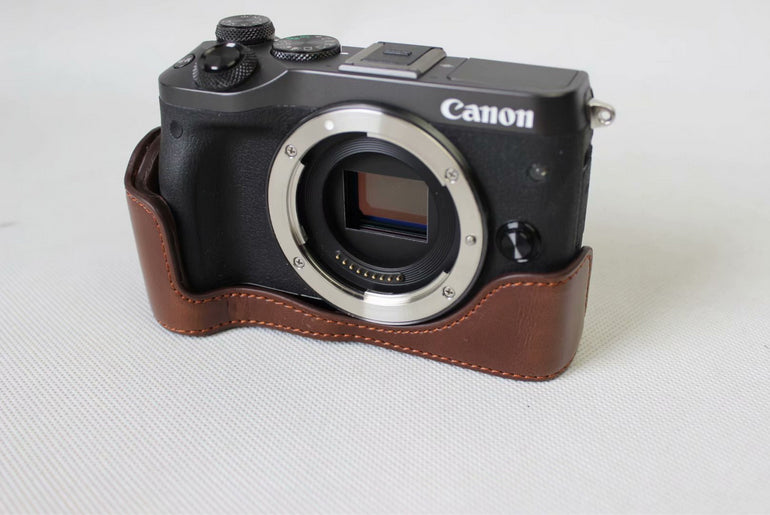 Half Camera PU Leather Protective Bottom Mount Cover for Canon EOS M6 - Coffee