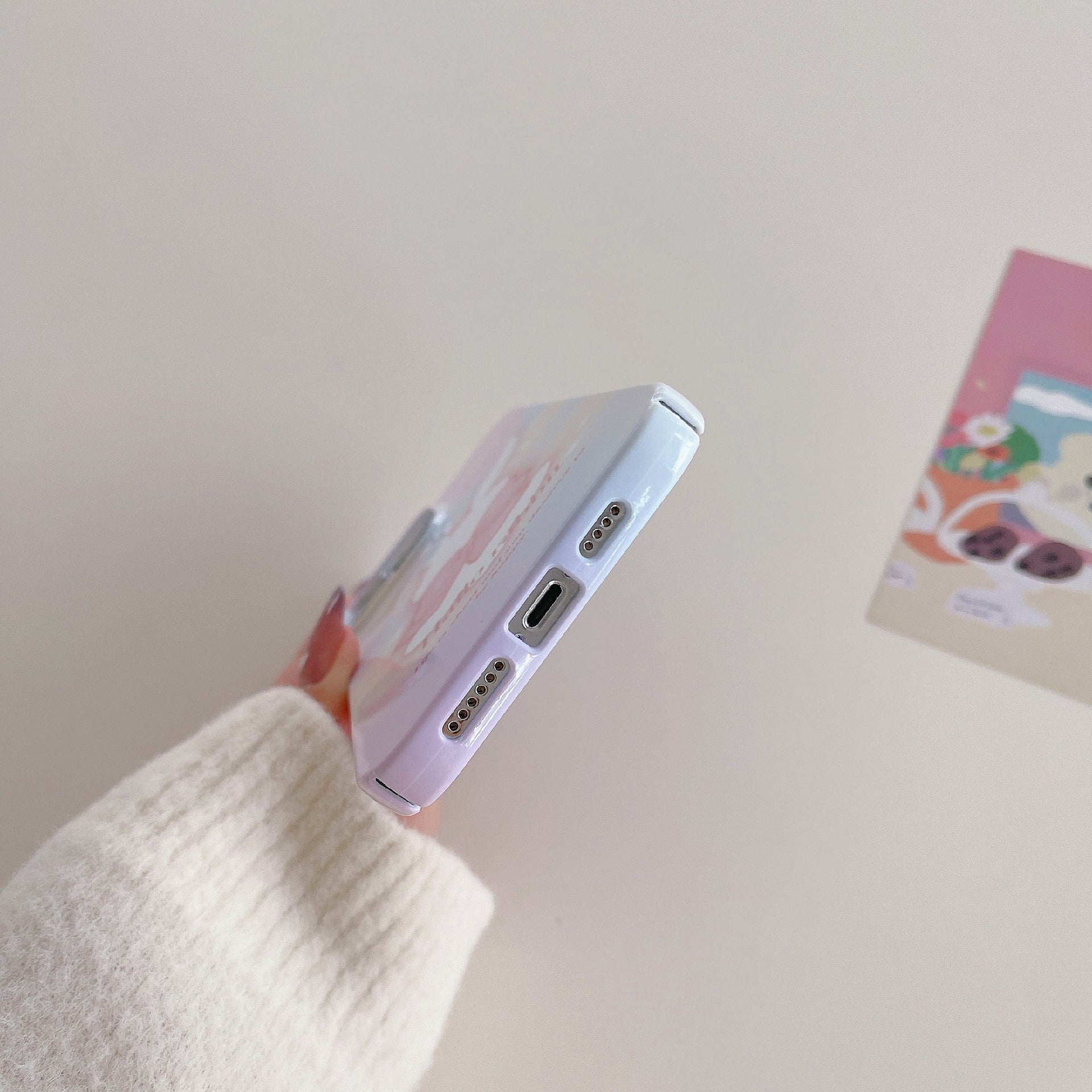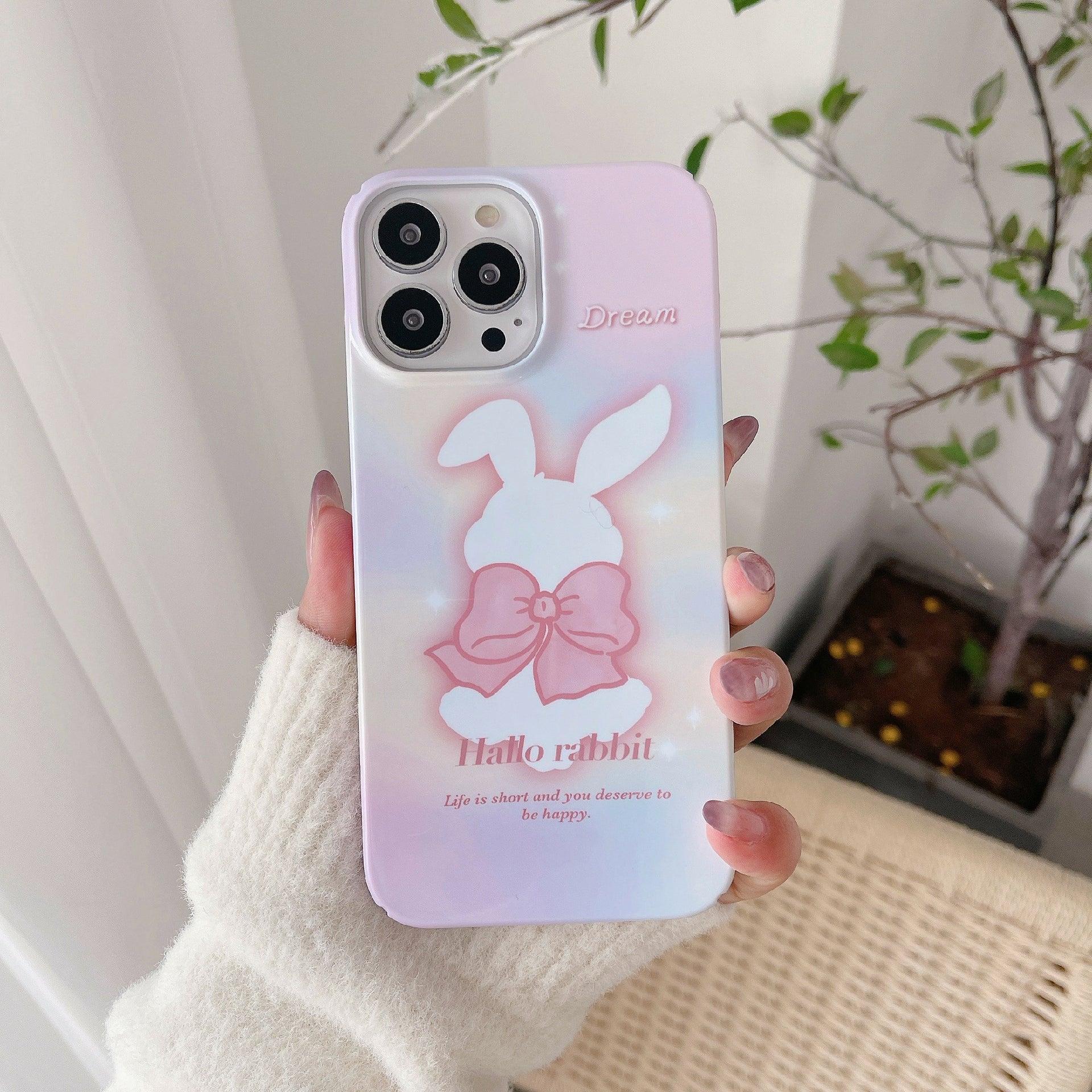 Hard PC Phone Cover for iPhone 12 Pro 6.1 inch Pattern Printing Anti-Drop Glossy Phone Case - Bowknot Rabbit