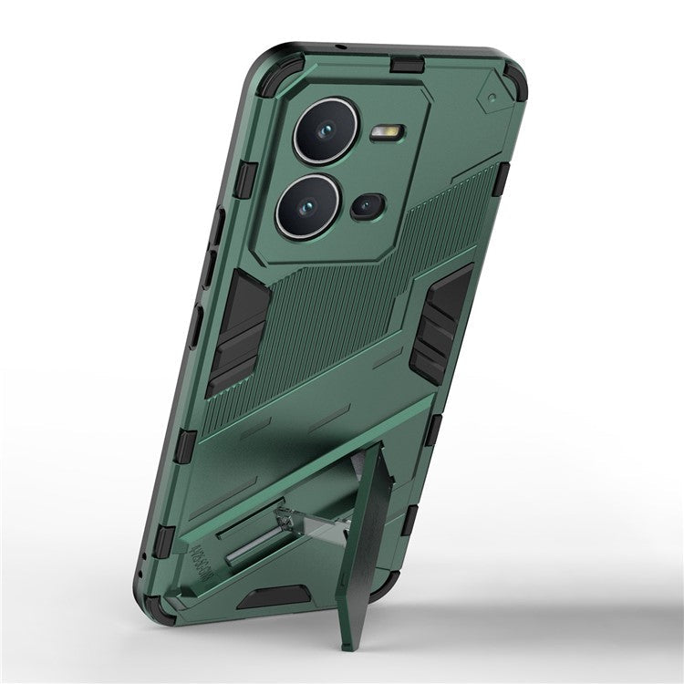 Hard PC + Soft TPU Phone Case for vivo V25 5G, Drop-proof Protective Kickstand Back Cover - Green