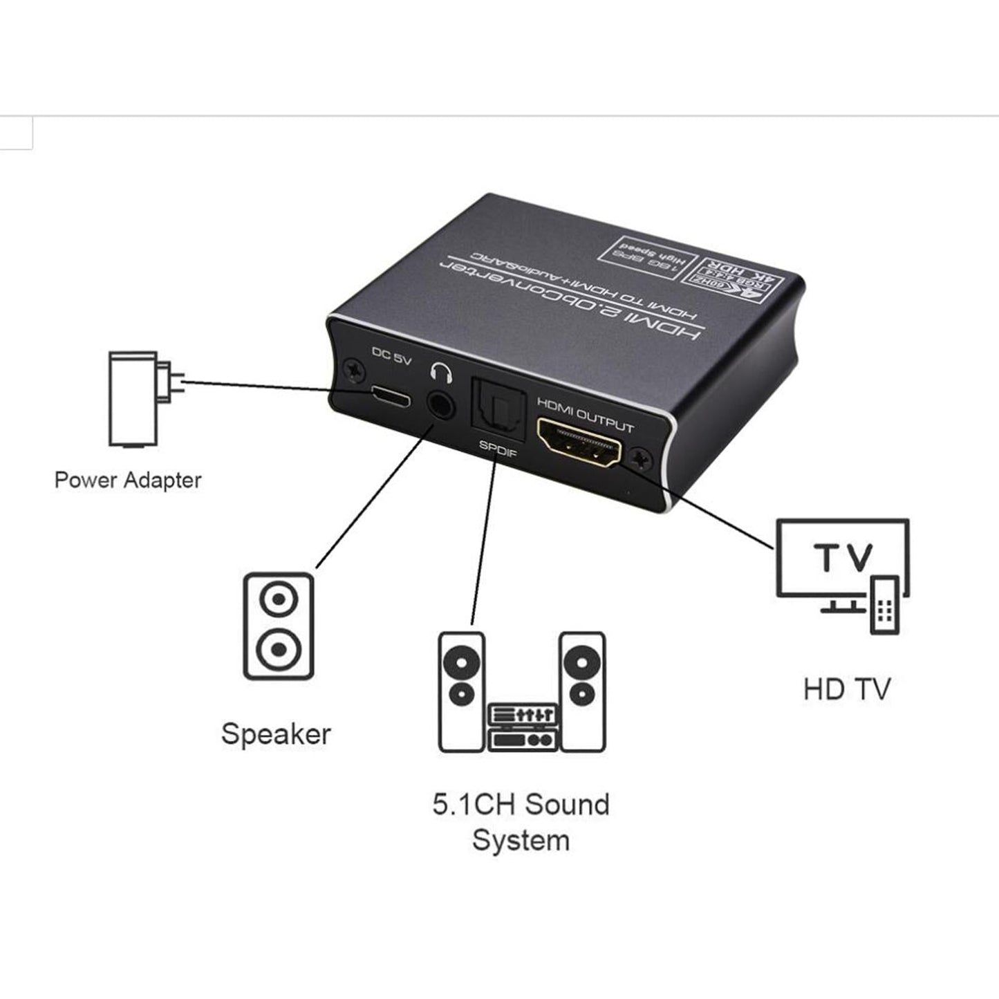 One HDMI input converted to one HDMI+ Audio (SPDIF+3.5mm)output.