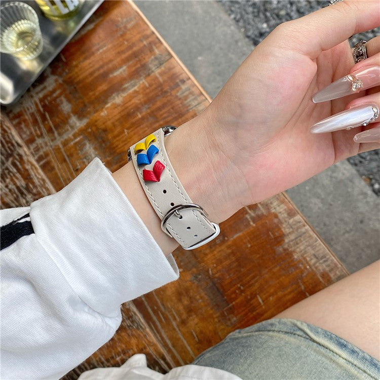 Heart Cowhide Leather Strap for Apple Watch Series 10 42mm / 9 8 7 41mm / SE (2023) SE (2022) SE 6 5 4 40mm / 3 2 1 38mm - Beige+Multi-color