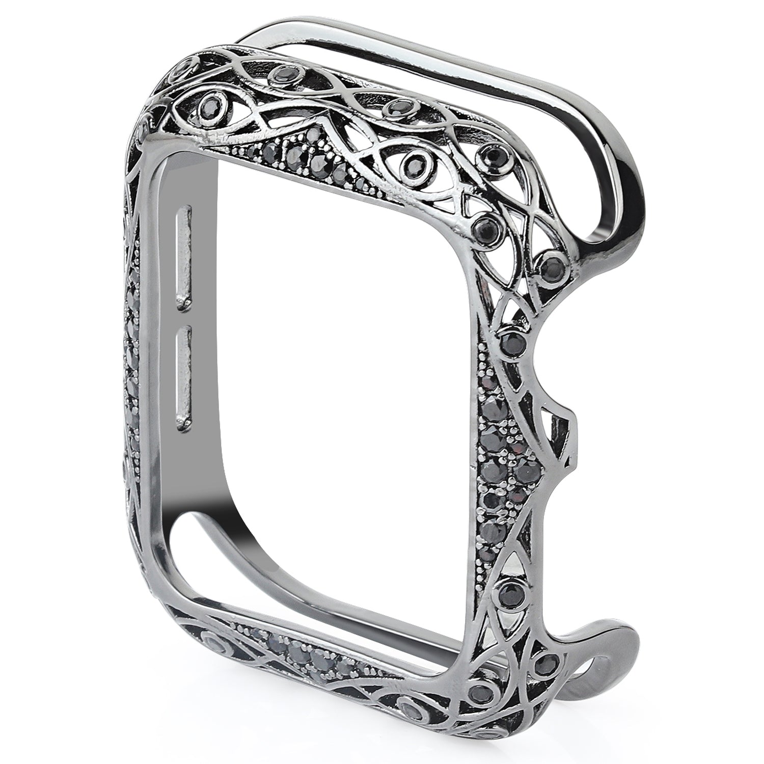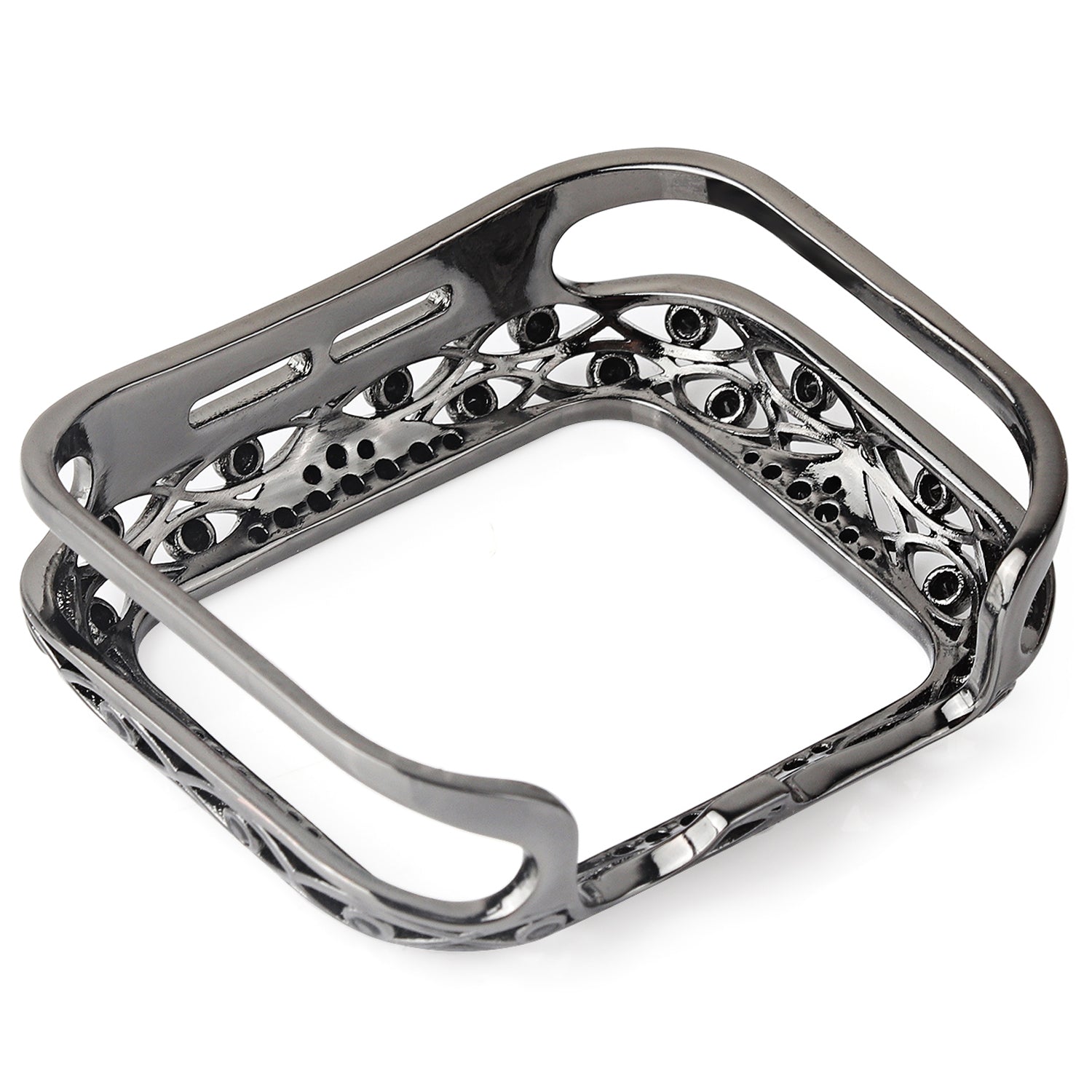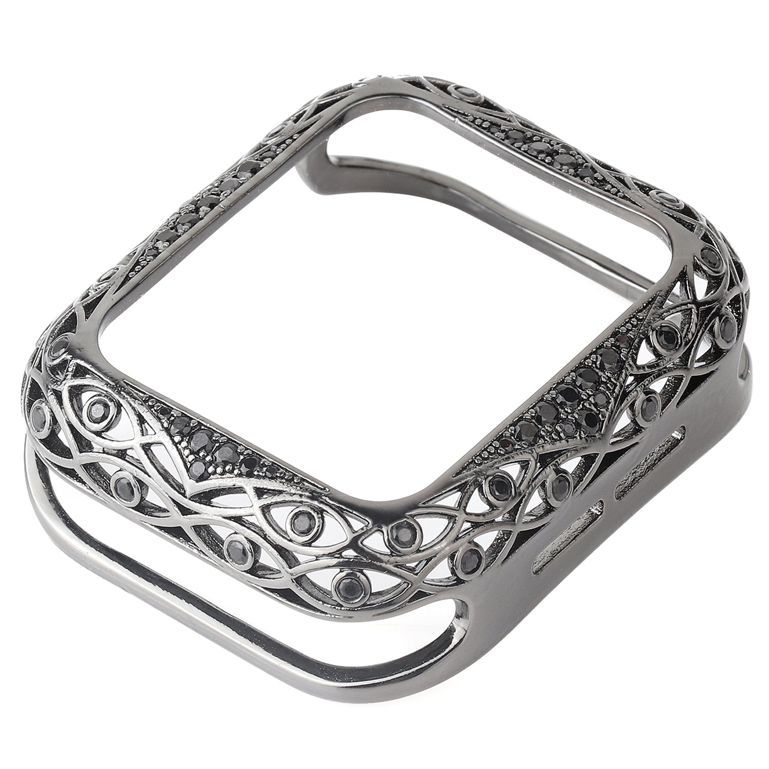 Hollow-out Zircon Decor Anti-fall Copper Watch Case Cover for Apple Watch SE / SE (2022) 40mm / Series 6 / 5 / 4 40mm - Black