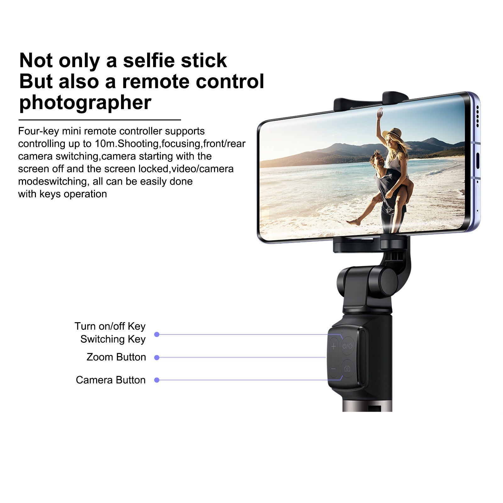 Selfie Stick and Tripod Mount 2 in 1 Design: More creative design, record every moments of your life.