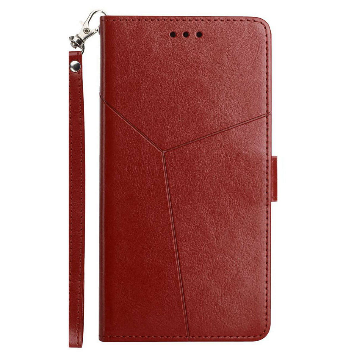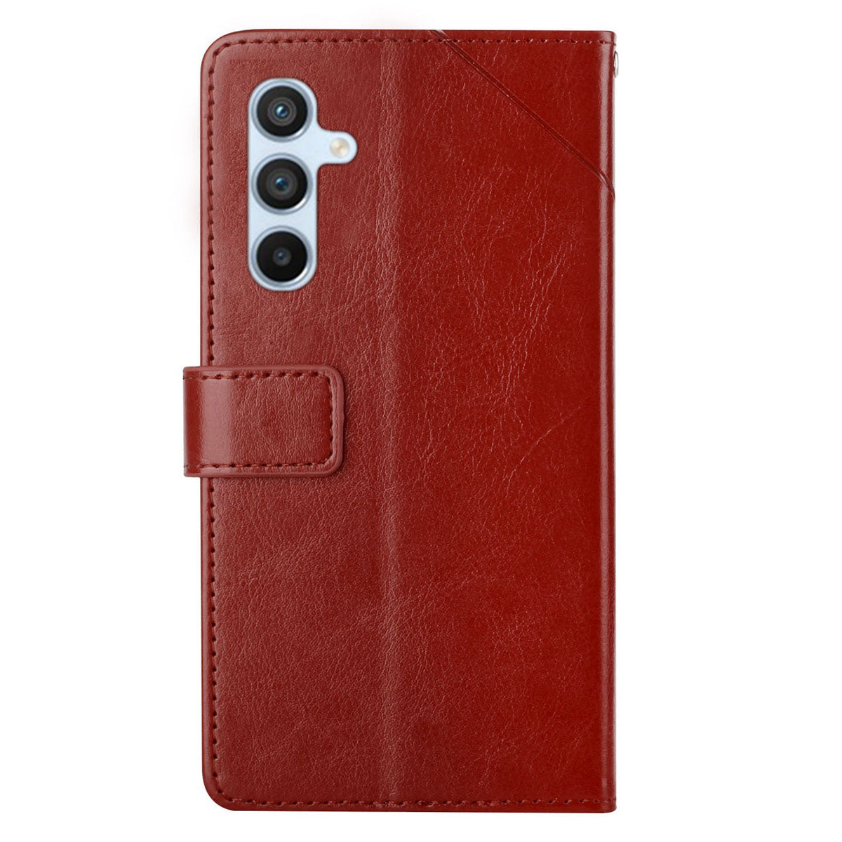 HT01 For Samsung Galaxy A16 5G / A16 4G Case Y-Shaped Lines Imprint Leather Phone Cover - Brown
