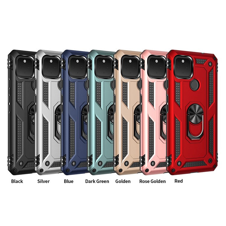 Hybrid PC + TPU + Metal Anti-Fall Finger Ring Kickstand Phone Case Shell for Google Pixel 4a 5G - Gold