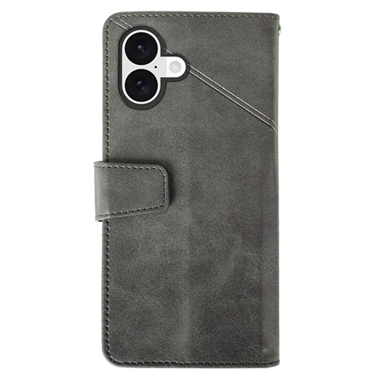 IDEWEI For iPhone 16 Plus Case Leather Wallet Phone Cover Stand Calf Texture - Grey