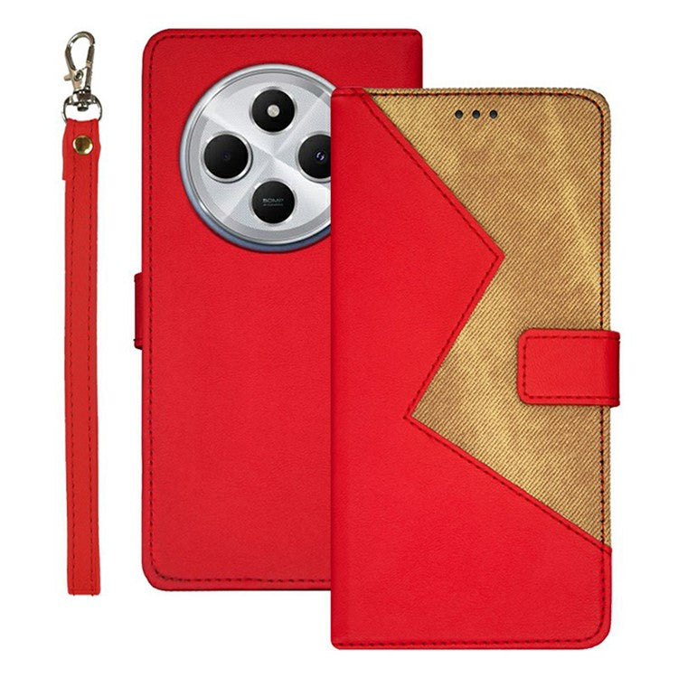 IDEWEI For Xiaomi Poco C75 4G / Redmi 14R 5G / 14C 4G Case Card Slots Splicing Color Leather Phone Cover - Red