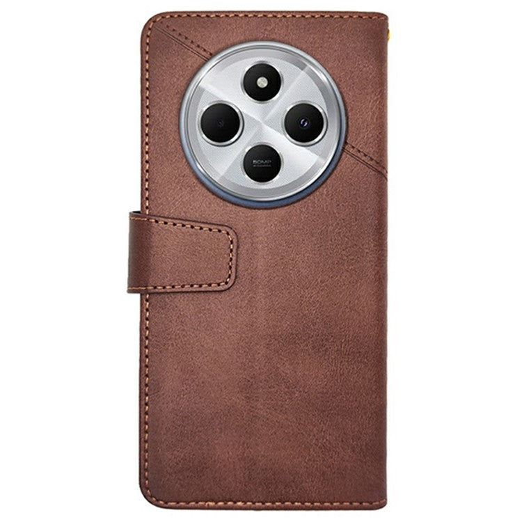 IDEWEI For Xiaomi Poco C75 4G / Redmi 14R 5G / 14C 4G Wallet Phone Case Calf Texture Stand Leather Cover - Brown