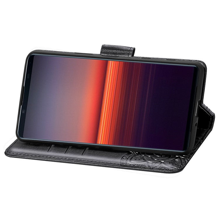 Imprint Big Butterfly Leather Wallet Phone Shell for Sony Xperia 5 II - Black