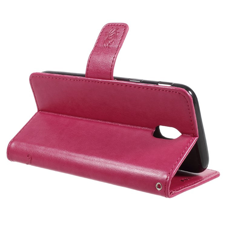 Imprint Butterfly Flower Magnetic Wallet PU Leather Stand Cover for Samsung	Galaxy J5 (2017) EU / Asia Version - Rose