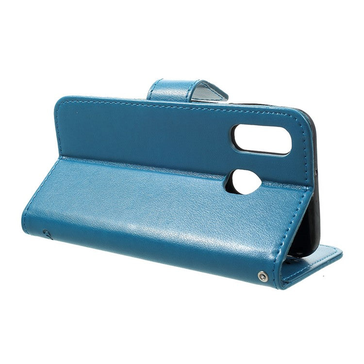 Imprint Butterfly Flower Stand Wallet Leather Shell Case for Samsung Galaxy A40 - Blue