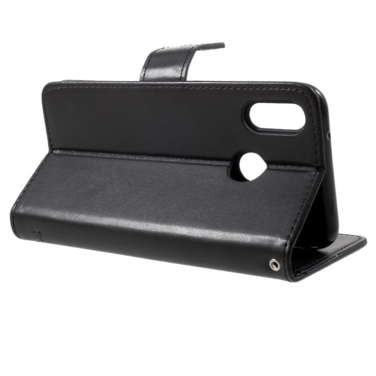 Imprint Butterfly Flower Wallet Leather Cover for Huawei P20 Lite / Nova 3e - Black