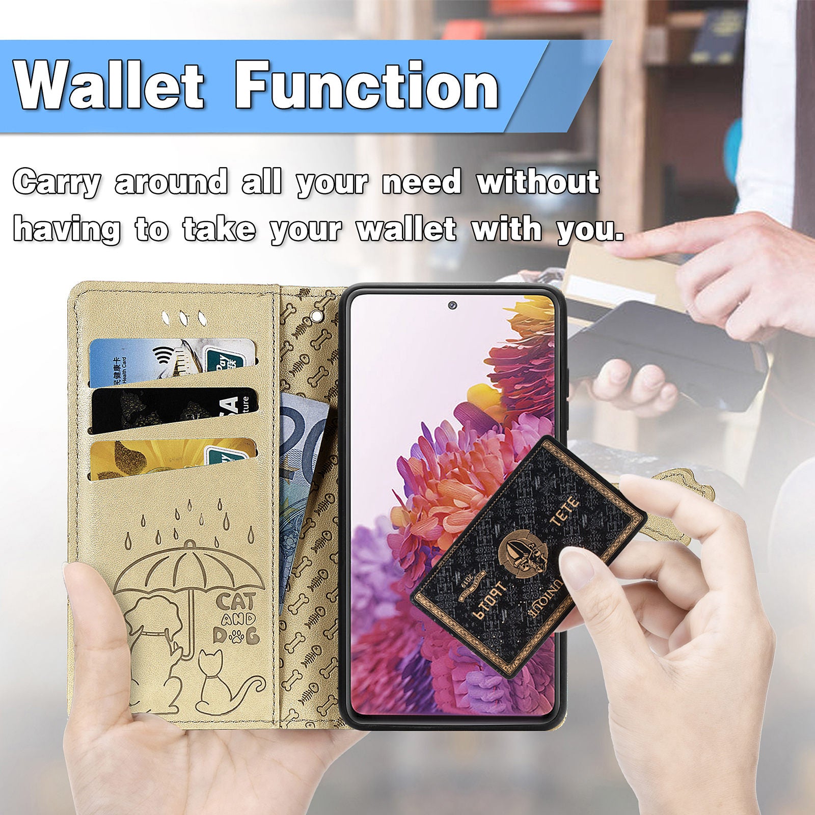 Imprint Cat Dog Pattern Leather Case with Stand Wallet for Samsung Galaxy S20 FE 2022/S20 FE 4G/S20 FE 5G/S20 Lite - Gold