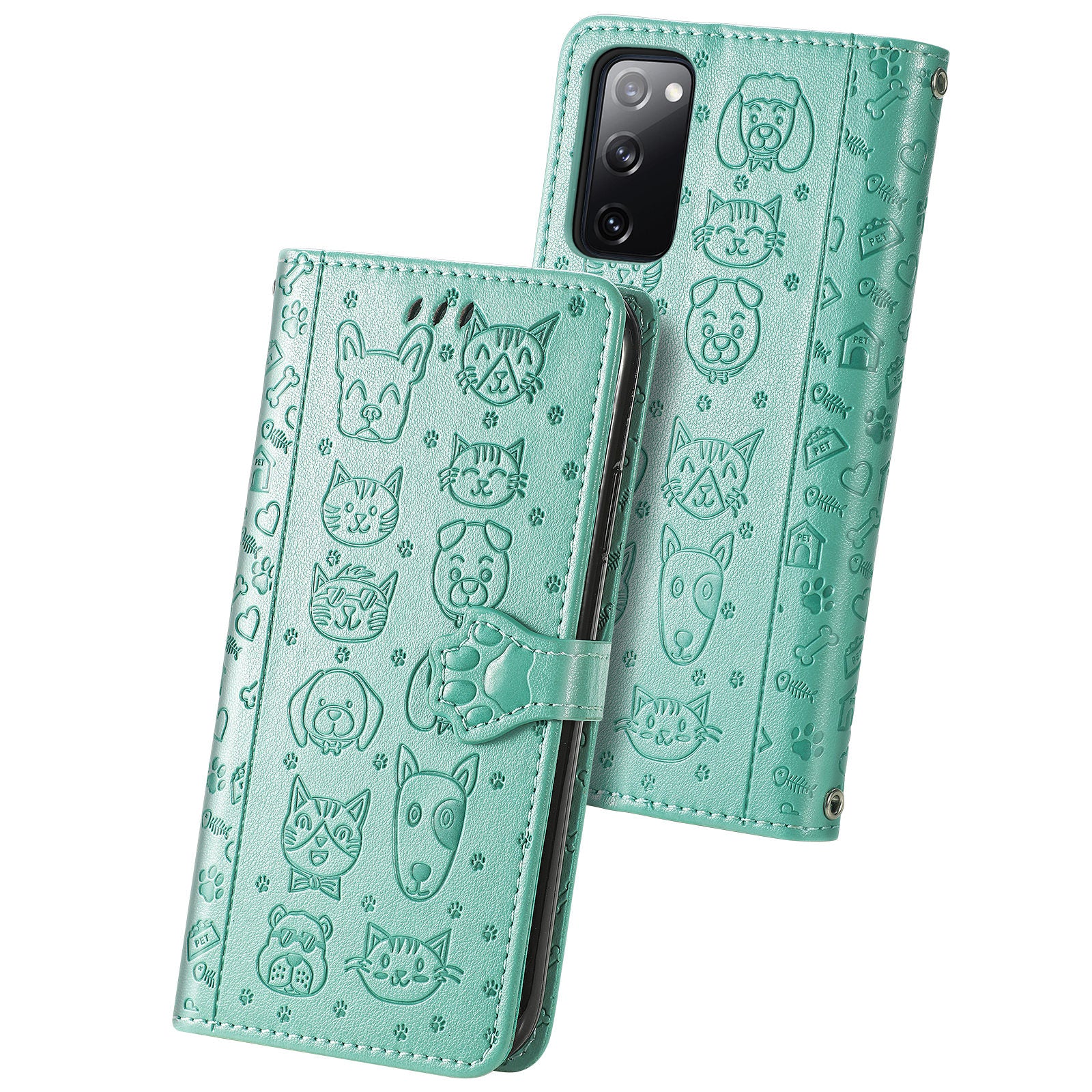 Imprint Cat Dog Pattern Leather Case with Stand Wallet for Samsung Galaxy S20 FE 2022/S20 FE 4G/S20 FE 5G/S20 Lite - Green