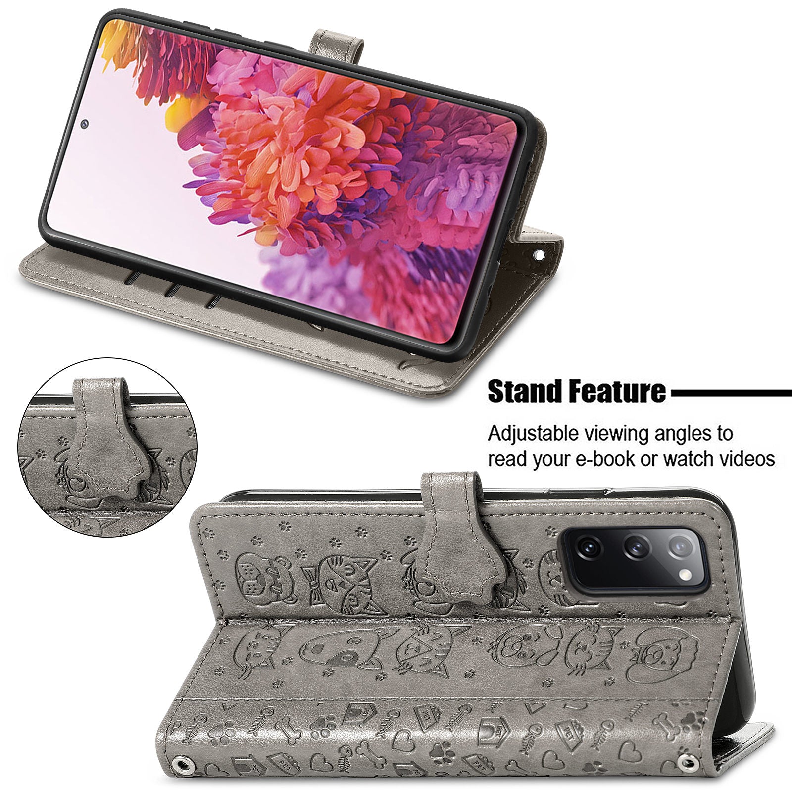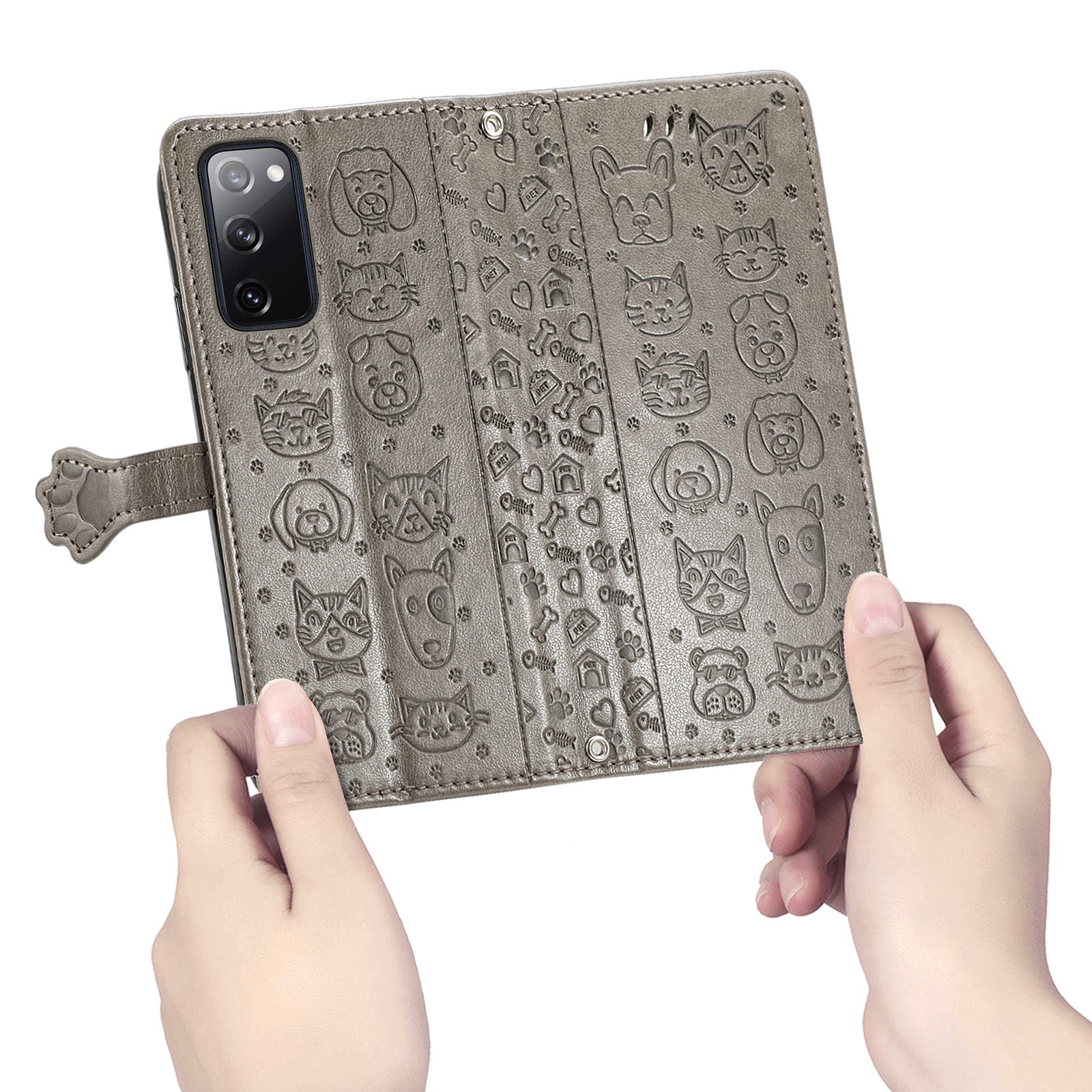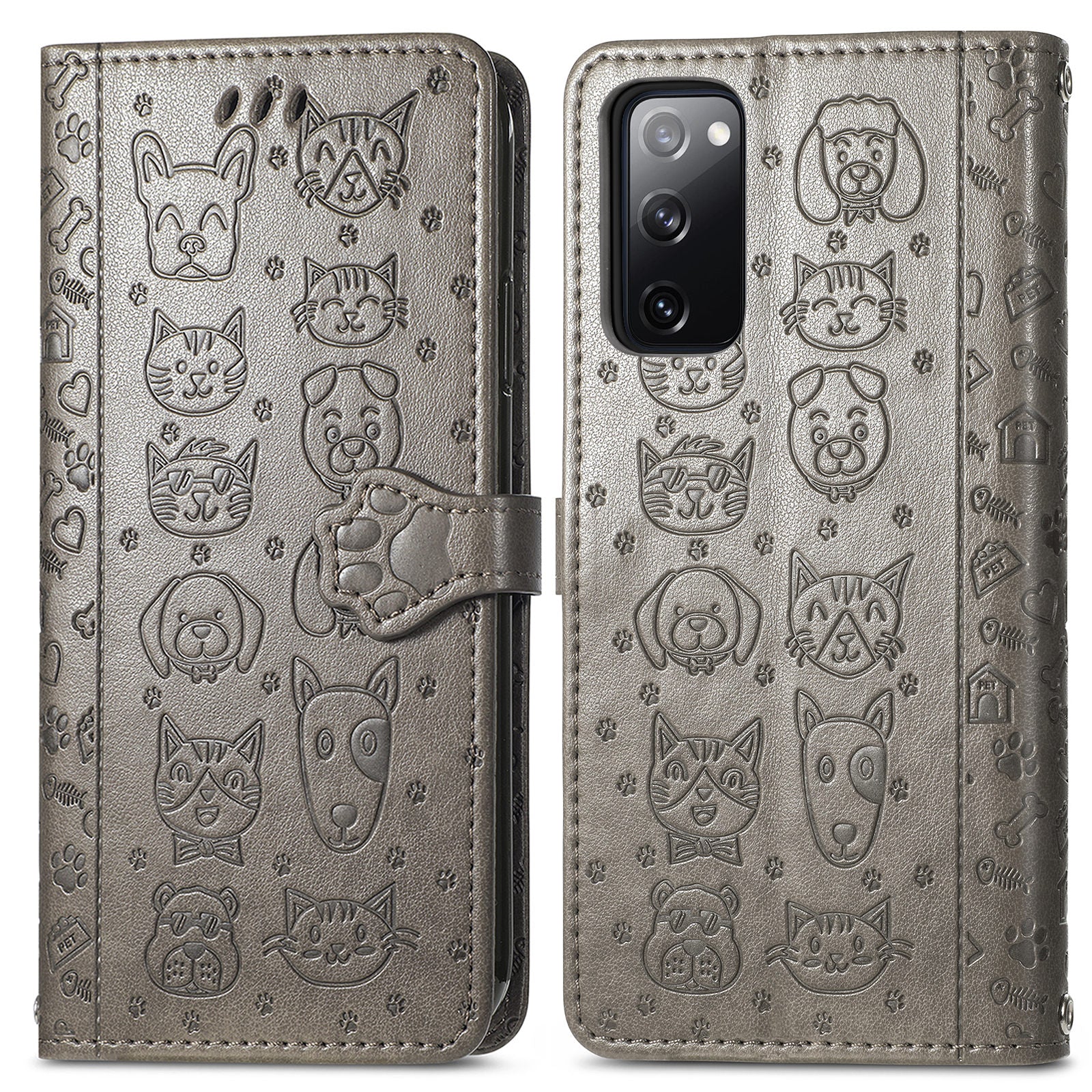 Imprint Cat Dog Pattern Leather Case with Stand Wallet for Samsung Galaxy S20 FE 2022/S20 FE 4G/S20 FE 5G/S20 Lite - Grey