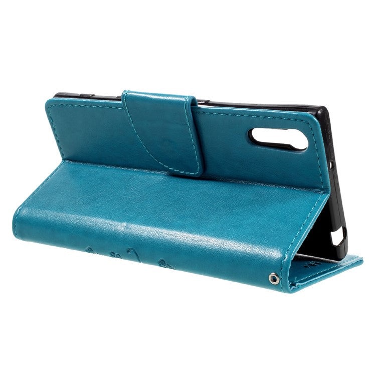 Imprint Floral Butterfly Leather Mganteic Case for Sony Xperia XZs / XZ with Lanyard - Blue