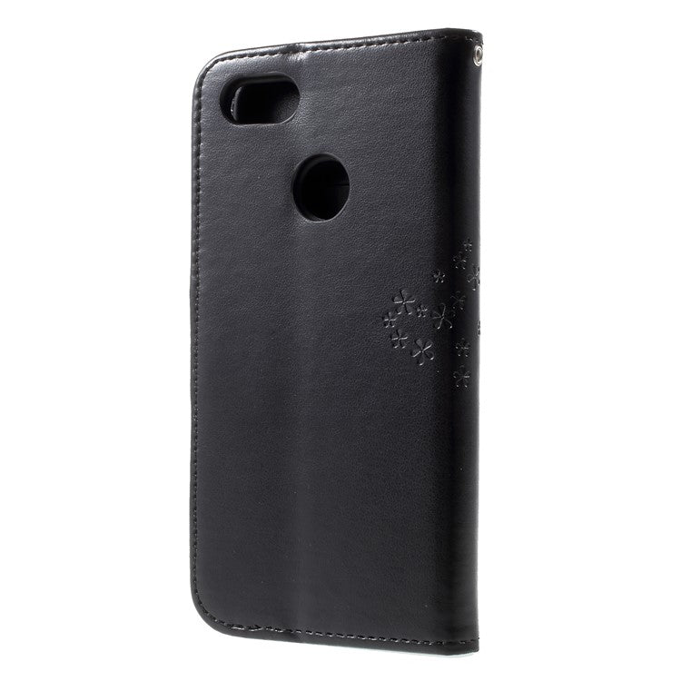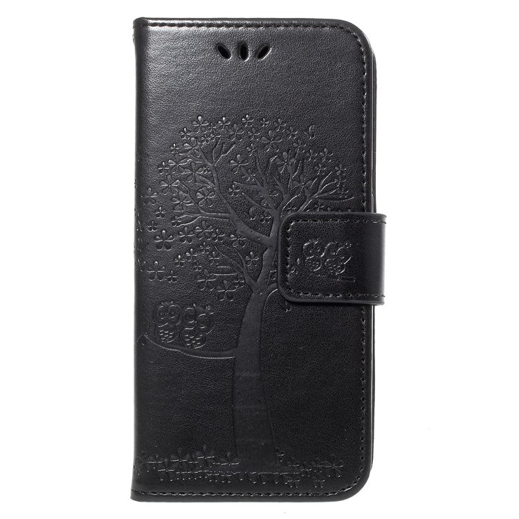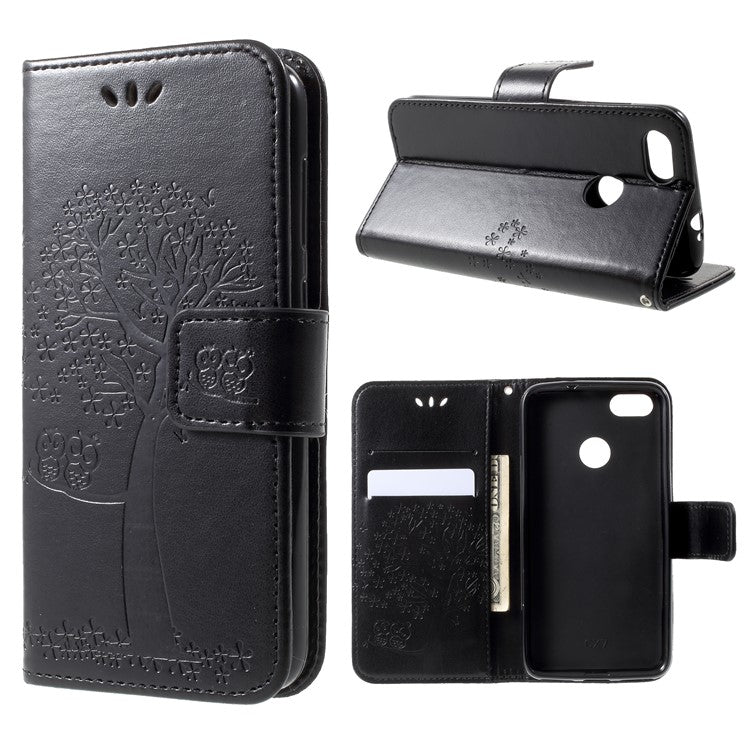 Imprint Tree Owl Leather Wallet Stand Case for Huawei P9 lite mini / Y6 Pro (2017) / Enjoy 7 - Black