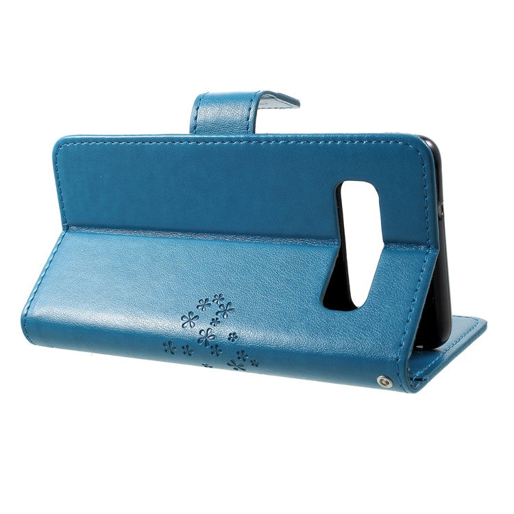 Imprint Tree Owl Pattern PU Leather Stand Cell Phone Case for Samsung Galaxy S10 - Blue