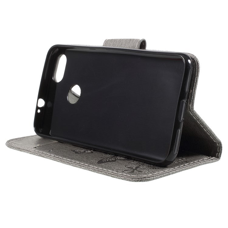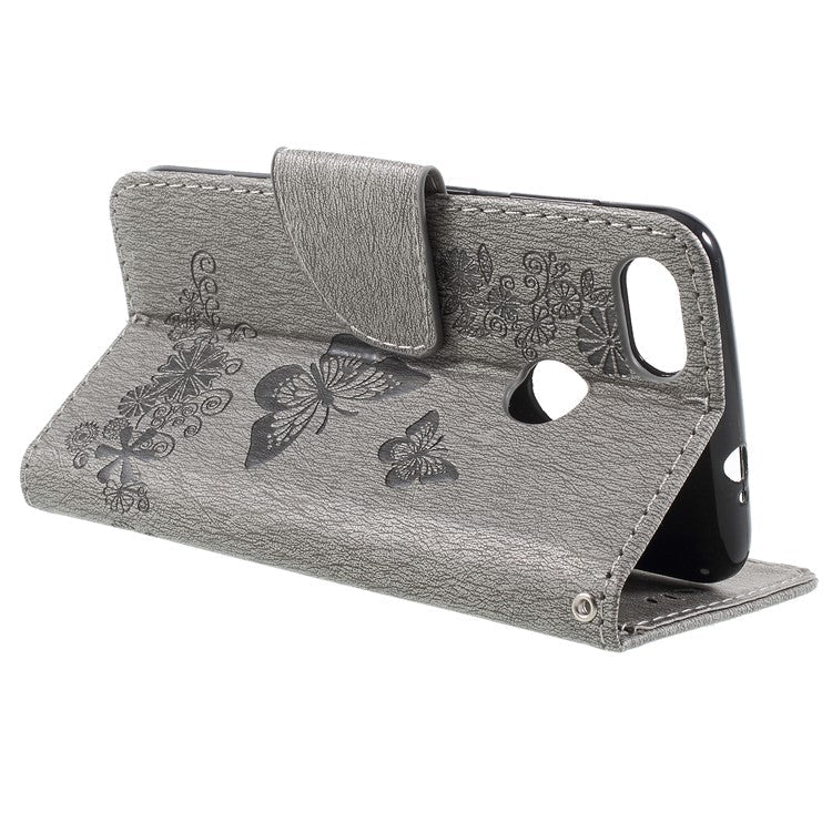 Imprinted Butterfly Flowers Magnetic Leather Wallet Case for Huawei P9 lite mini / Enjoy 7 / Y6 Pro (2017) - Grey