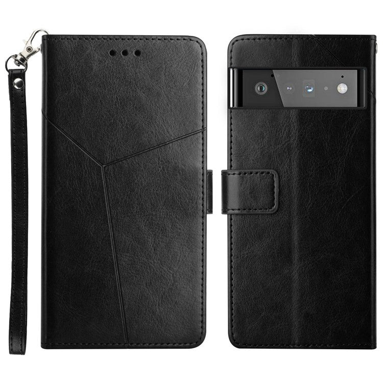 Imprinting Y-shaped Lines PU Leather Full Protection Phone Flip Cover Protective Case for Google Pixel 6 - Black