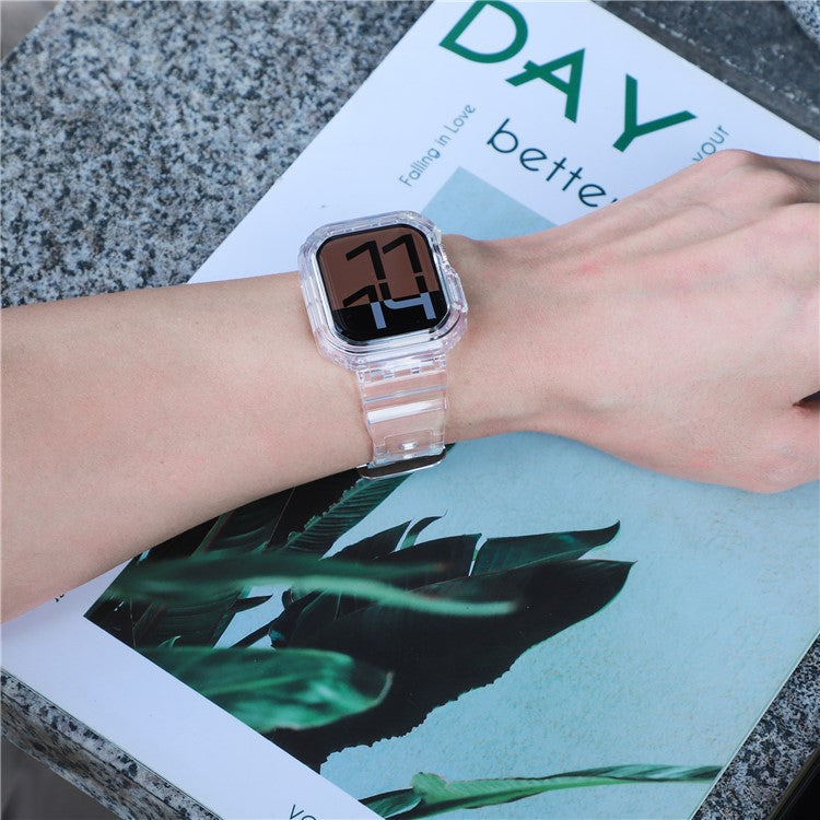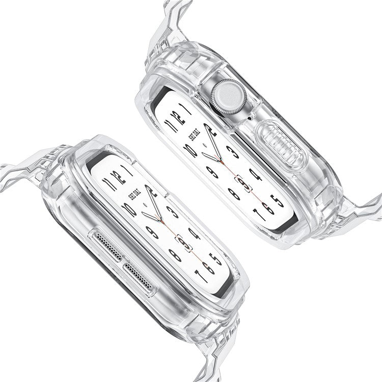 Integrated TPU Strap + Watch Case for Apple Watch Series 10 46mm / Ultra 2 / Ultra 49mm / 9 8 7 45mm / SE (2023) SE (2022) SE 6 5 4 44mm / 3 2 1 42mm - Transparent Black
