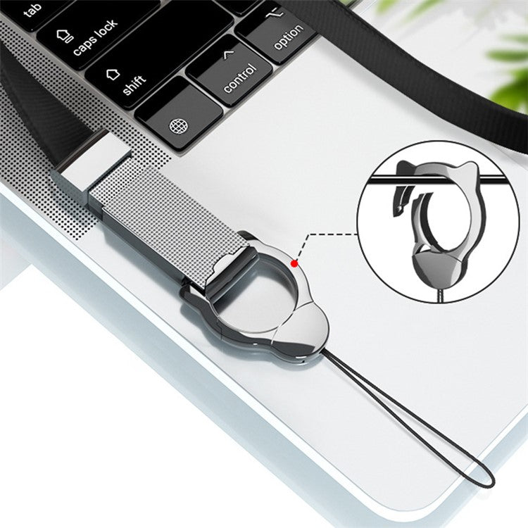 INYUE Detachable Cat Head Finger Ring Slide Buckle Design Woven Nylon Lanyard Phone Anti-drop Neck Strap - Black