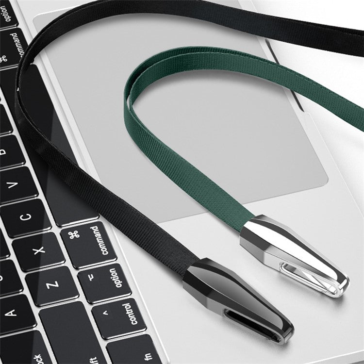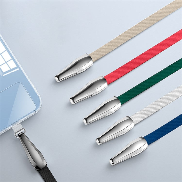 INYUE Woven Shoulder Strap Metal High-speed Rail Hook Design Anti-lost Phone Carrying Lanyard with Transparent TPU Patch - Black