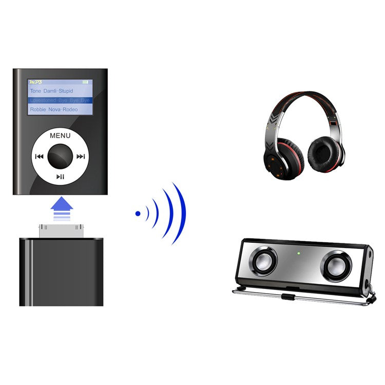 - Plug-and-Play Simplicity: No need for additional software or complicated setup. Simply connect the 30-pin Bluetooth transmitter for iPod, and it automatically pairs with your Bluetooth stereo headphones or speakers