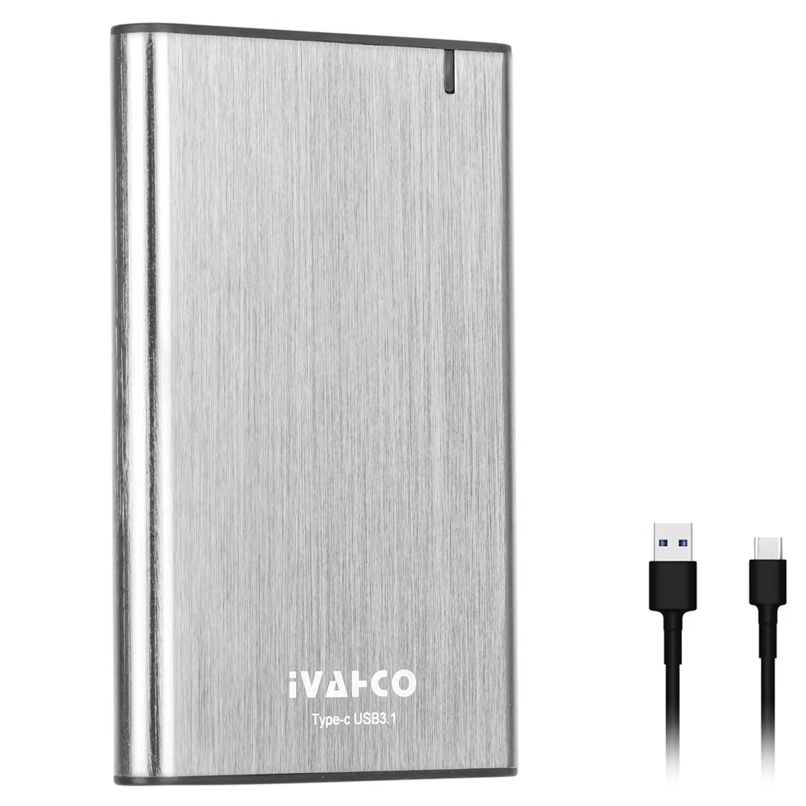 IVAHCO 750GB HDD External Case Type-C USB3.1 2.5" Brushed Metal Solid State Drive Enclosure with Indicator - Silver