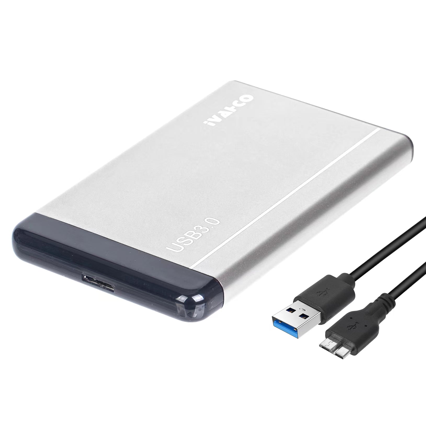 IVAHCO 750GB Matte Hard Drive Box 2.5" HDD External Case USB3.0 Hard Disk Enclosure with Data Cable - Silver
