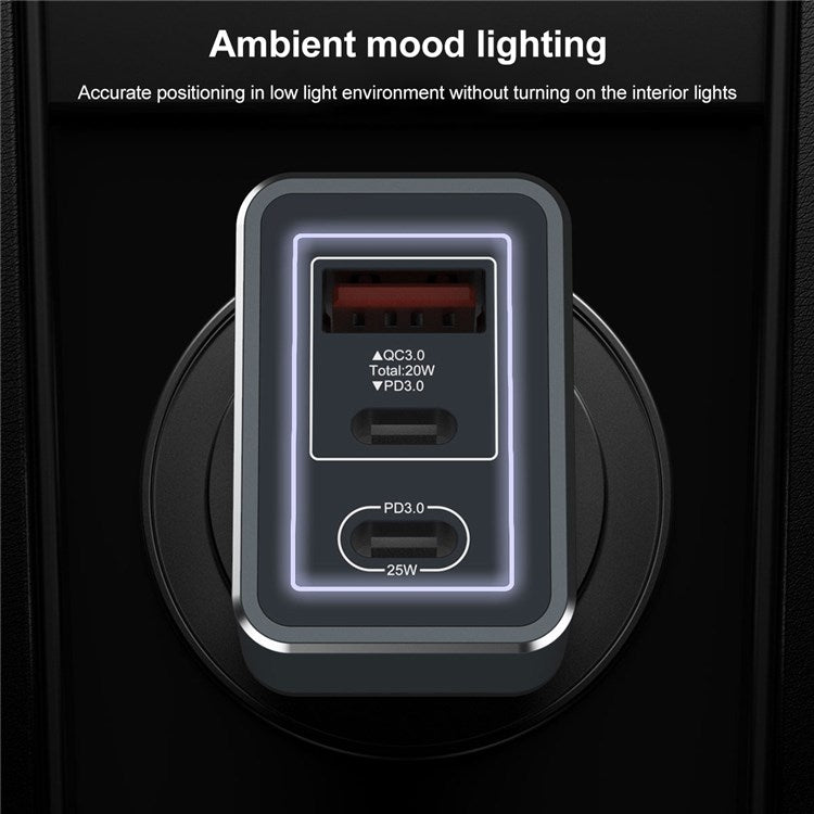 IVON CC43 45W PD 3.0 Dual Type-C+QC 3.0 USB Square Car Charger Phone Fast Charging Power Adapter