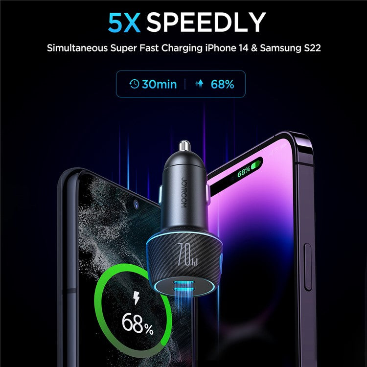 JOYROOM CCN02 70W Dual PD Car Charger Colorful Button Switch Cigarette Lighter Charger