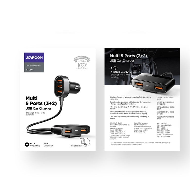 JOYROOM JR-CL03 5 USB Multi Port Car Charger Adapter for Samsung Xiaomi iPhone