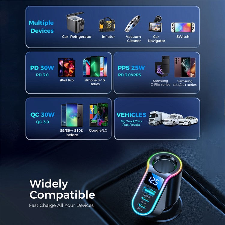 JOYROOM JR-CL21 150W Fast Charger QC+PD 4 in 1 USB+Type-C Cigarette Lighter Charger with LED Digital Display